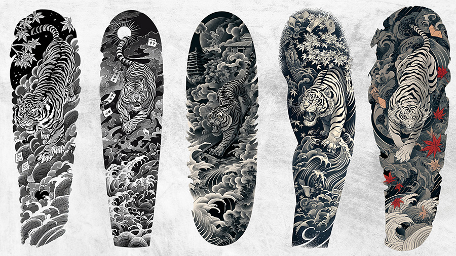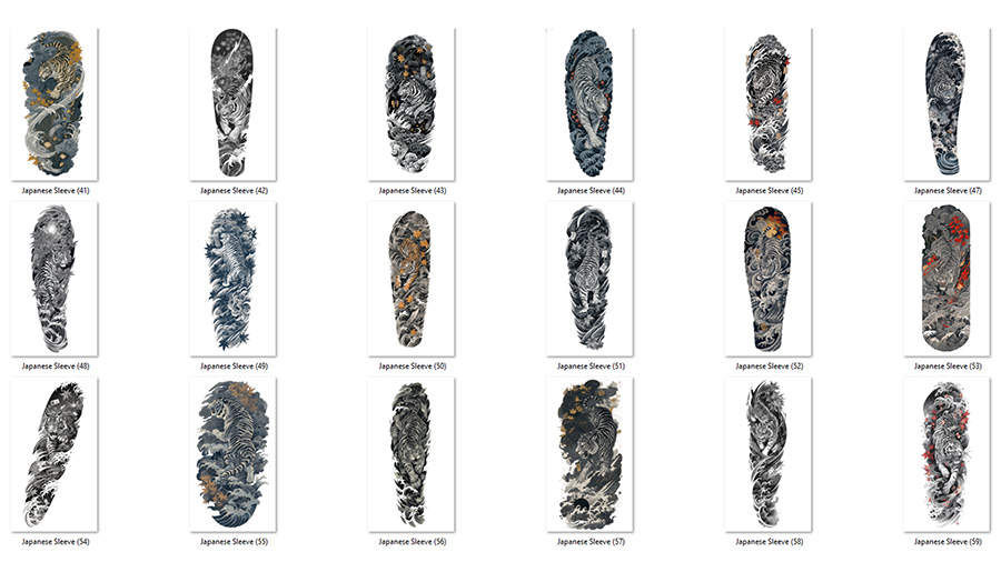 Unleash the power and elegance of traditional Japanese art with this premium collection of 95 high-quality Japanese illustrations. Each design features intricate details inspired by classic tiger and kind of Irezumi tattoo motifs — fierce dragons, sleeve designs bold florals, and dynamic compositions — all crafted to bring strength and beauty to your projects.
