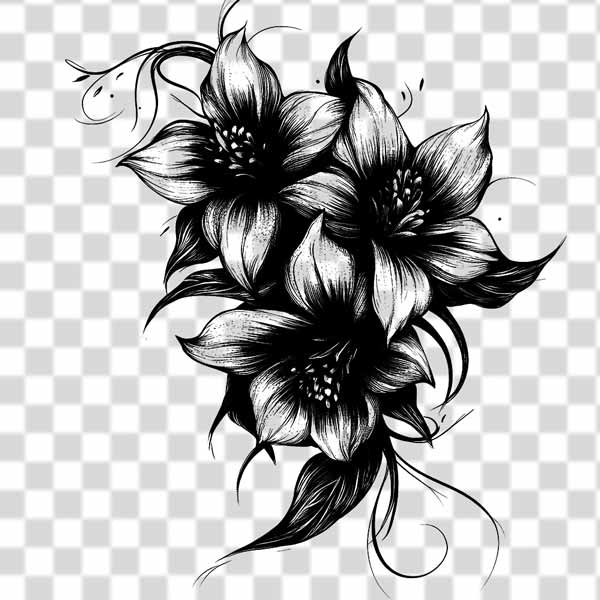This PNG design comes with a fully transparent background and high resolution quality. Tattoo design of three flower in front view with little leaves around it in PNG format.