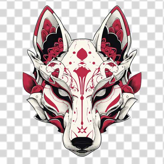 Download Free stylized illustration of a fox head kitsune png in 4k quality. Easily drag and drop and enjoy it.