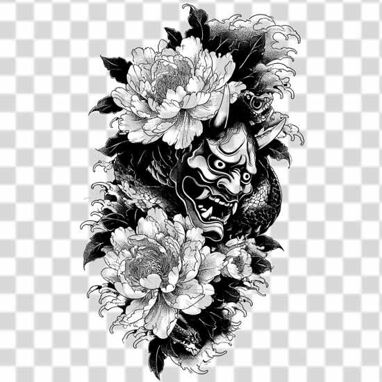 terrifying japanese design with giant roses and flowers in png tattoo