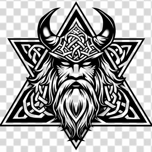 4k quality of Viking man illustration with triangle in the back and man in the center, It use for tattoo design and print art in PNG format.