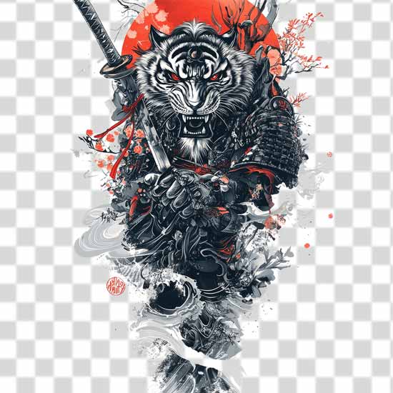 Download Free warrior tiger design with sword and Japanese style and 4k transparent in front view background in tattoo png. Easily drag and drop and enjoy it.